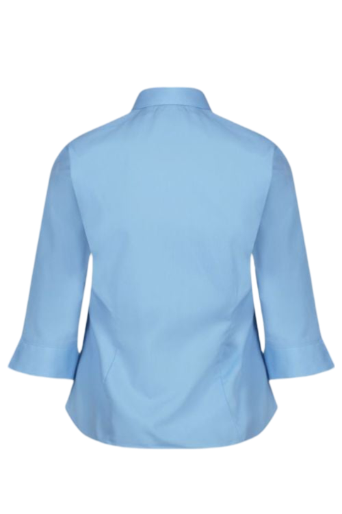 This is a high quality, non-iron, 3/4 sleeve fitted blouse available in blue.