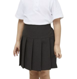 Drop waist, all round pleated junior skirt with elasticated back